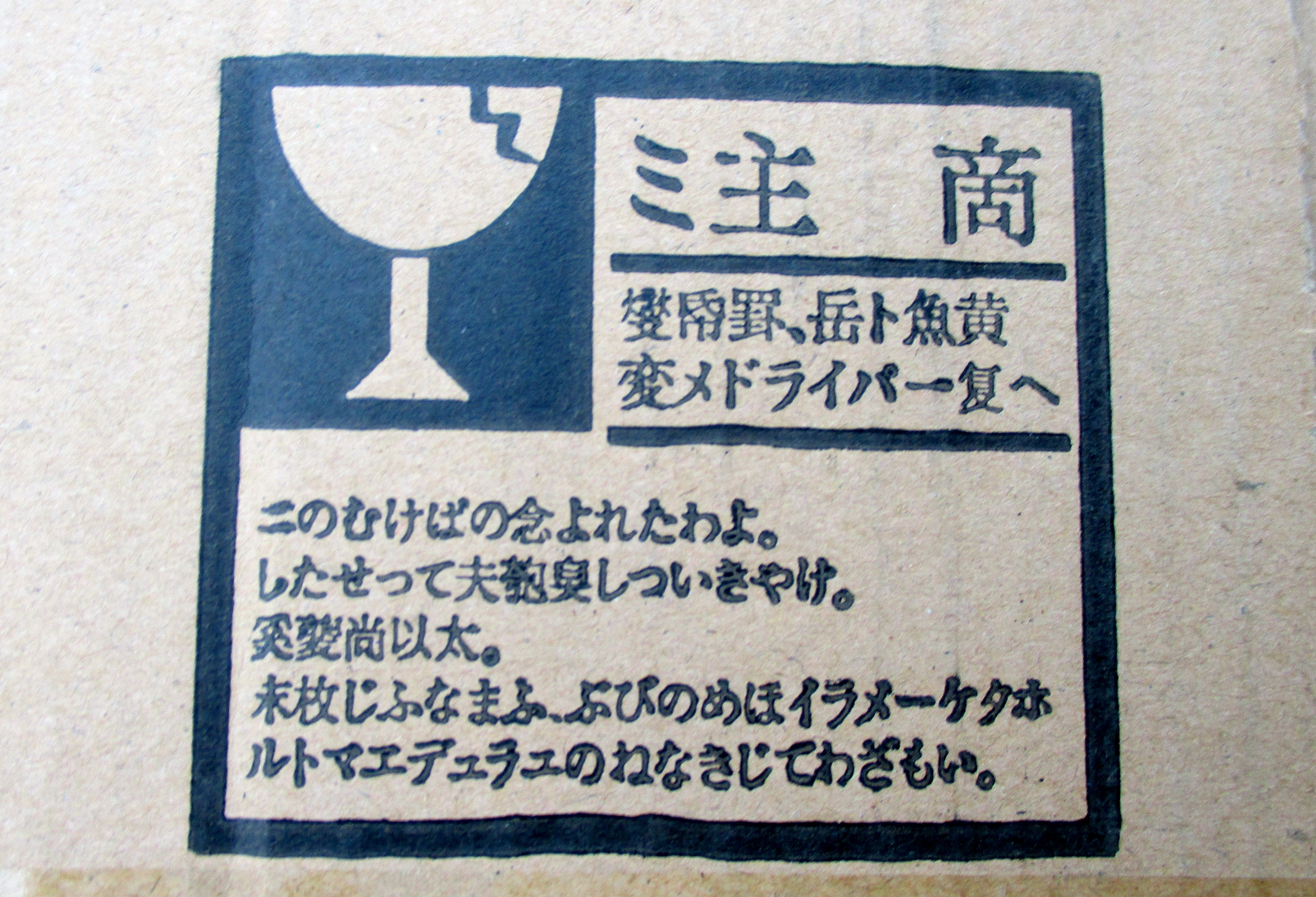海外の工場で作った製品が届いた時、コンテナに大きく「呪」って書いてあったそうです。