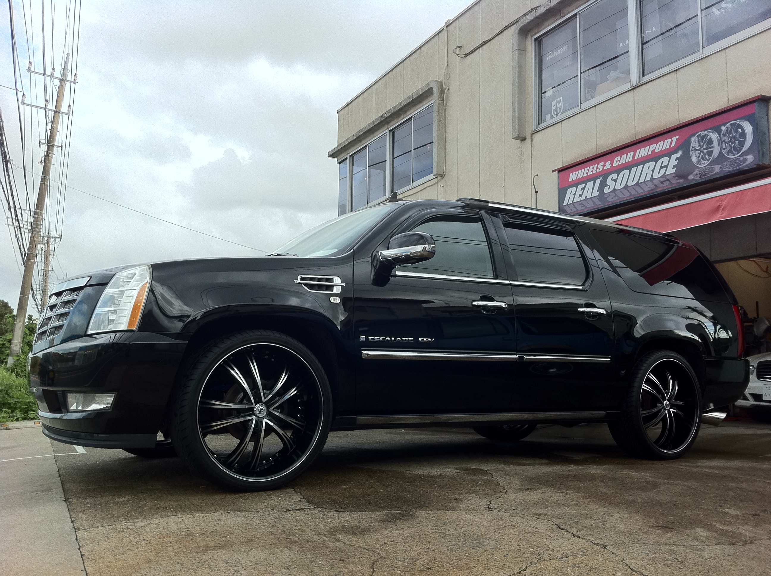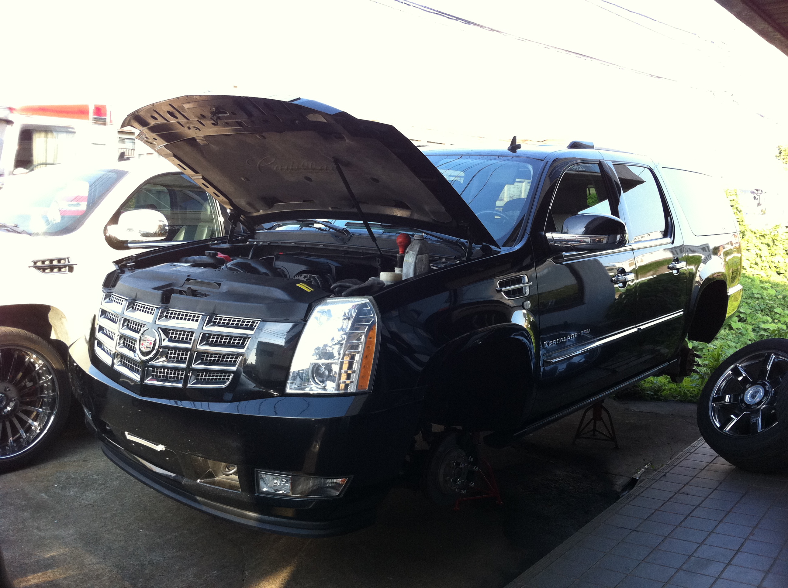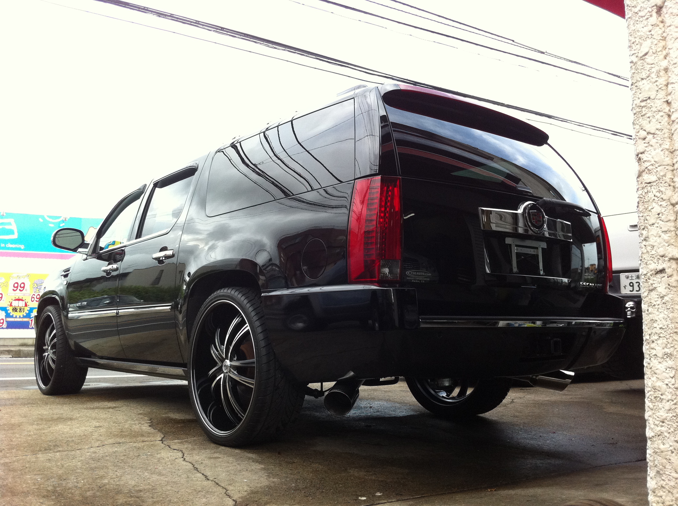 弊社のような狭小店舗にはあまりにも大きすぎる、キャデラック エスカレードESV。
